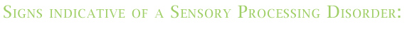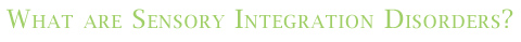 Sensory integrative/processing disorders are a set of conditions caused by an insufficient ability of the central nervous system to take in, register, modulate, perceive and/or combine sensory experiences from the environment around us. For the child with Sensory Integrative disorders the neural messages become disorganized as they travel towards the higher brain centers. These messages may become overly-amplified or diminished and are un-usable. The senses affected include any or all of the following: